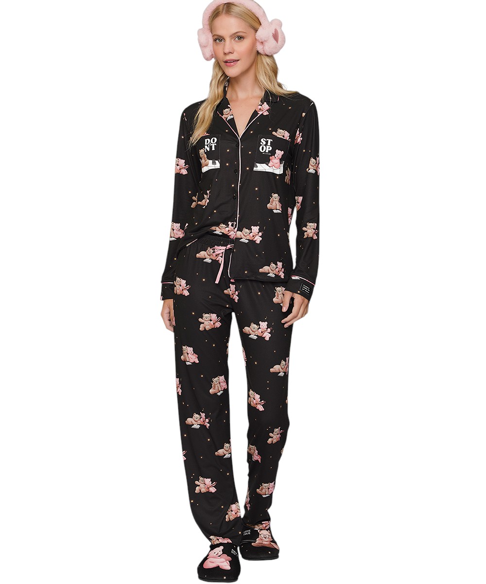Um coordenado especial para os novos amigos ursos desta coleção: Nina & Steve! Esse dueto querido preenche os pijamas de forma encantadora, compondo melodias para os sonhos de toda a família! Pijama Aberto de manga longa, confeccionado em sublime touch, malha com toque pele de pêssego. A blusa possui abertura e gola com acabamento em filete e botões personalizados, com bolsos estampados na frente. A calça, de modelagem ampla, recebe um elástico interno na cintura para melhor ajuste e conforto.