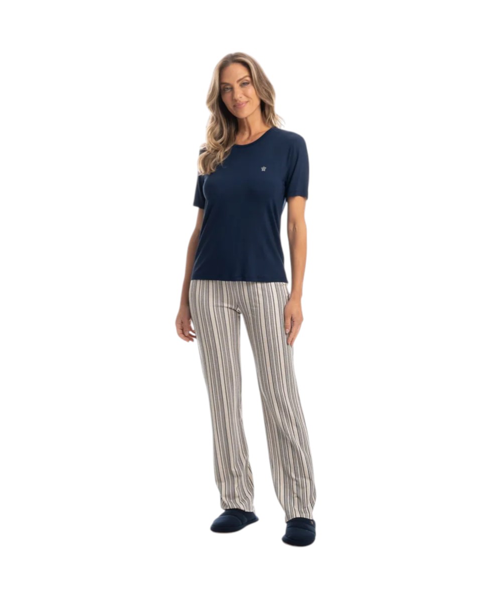 Pijama Feminino Longo Manga Curta Daniela Tombini 7362