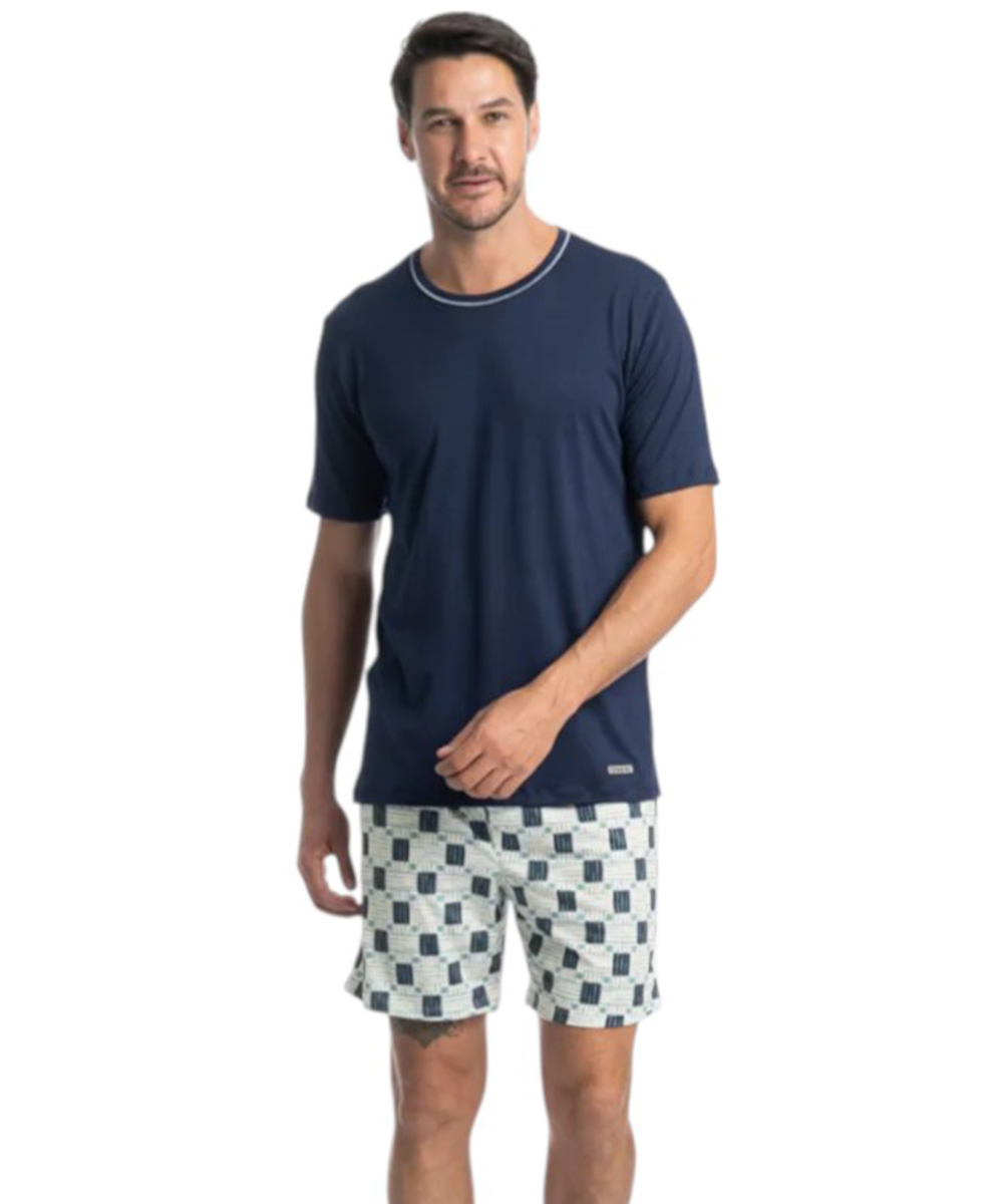 Pijama Masculino Curto Thomas Estampado Tombini é estilo para as suas noites! A blusa em manga curta possui uma modelagem ampla, confortável e aconchegante com trançador contrastante no decote redondo. Detalhe para a etiqueta personalizada Tombini na leteral inferior esquerda da peça. Seu shorts é todo estampado, e conta commodelagem ampla possui elástico macio proporcionando uma noite confortável. Confeccionado em Skin Touch, tecido extremamente macio. Seu toque aconchegante proporciona conforto térmico e uma sutil sensação de bem-estar. A combinação de poliéster com o elastano garante durabilidade e praticidade no seu dia a dia. Composição: Skin Touch: 90% Poliéster 10% Elastano