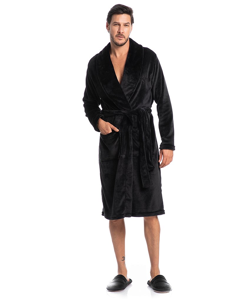 Robe Masculino Léo Tombini é perfeito para suas manhãs de inverno! A peça em comprimento longo, modelagem ampla e confortável conta com amarre e dois bolsos frontais, perfeitos para manter as mãos aquecidas. Detalhe para o bordado Tombini na lateral esquerda