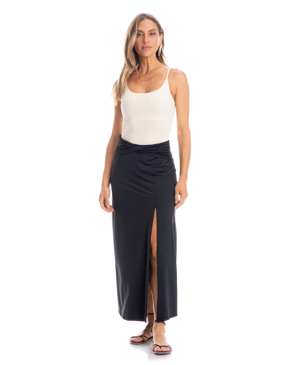 Saia Super Midi Cós Transpassado Málaga é estilo e tendência! Sua modelagem moderna em comprimento super midi, possui cós transpassado com a frente levemente franzida trazendo muita delicadeza e modernidade para a peça sem marcar a cintura. Detalhe para a abertura na frente, garantindo estilo e melhor respirabilidade, é uma peça fluída e muito confortável que irá te deixar a cara do verão com o estilo e sofisticação que essa estação merece! O modelo é confeccionado em tecido Fluity, uma malha compacta produzida com elastano e microfibra de nylon biodegradável, este último com uma tecnologia brasileira, inovadora e pioneira no mundo, composta pelo nylon 6.6. A decomposição que antes demorava décadas para ocorrer no nylon, nome genérico poliamida, agora acontece em menos de 3 anos. Com visual liso e estrutura suavemente elastizada, seus filamentos chegam a ser mais finos que um fio de cabelo humano, agregando ao produto um toque de extrema maciez, além de um ajuste flexível e agradável ao corpo. Esta maciez proporciona um contato suave com a pele e excepcional conforto durante o uso associado à boa absorção da umidade natural do corpo devido à característica do nylon. O artigo Fluity – (CO2) tem proteção UV 50+ contra radiação ultravioleta e é isento de produtos tóxicos para a pele humana conforme certificação internacional Oeko-Tex 100 Classe I.