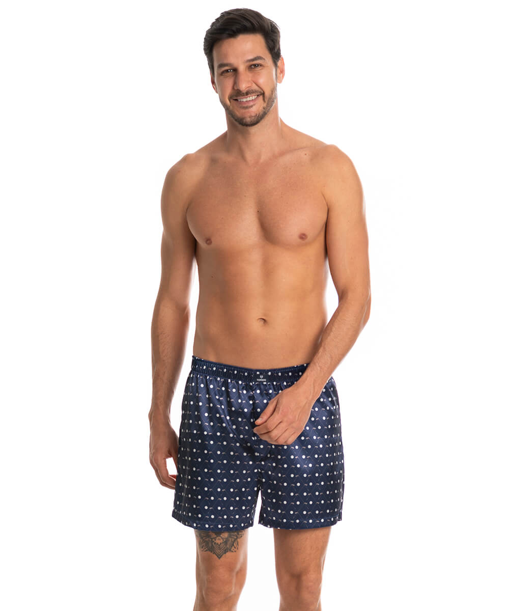 Boxer Masculina Estampada Enzo Tombini é conforto e estilo para os dias mais quentes! Em modelagem, ampla e confortável. Detalhe da etiqueta Tombini no centro do cós. A peça é feita em Cetim com elastano, tecido plano de aspecto brilhante, de toque fluido e macio. Composto por fios de poliéster e elastano garantindo maior conforto e elasticidade ao produto. Sua composição permite estampas com mais definição, cor e brilho acetinado. Disponível em quatro opções de estampa!